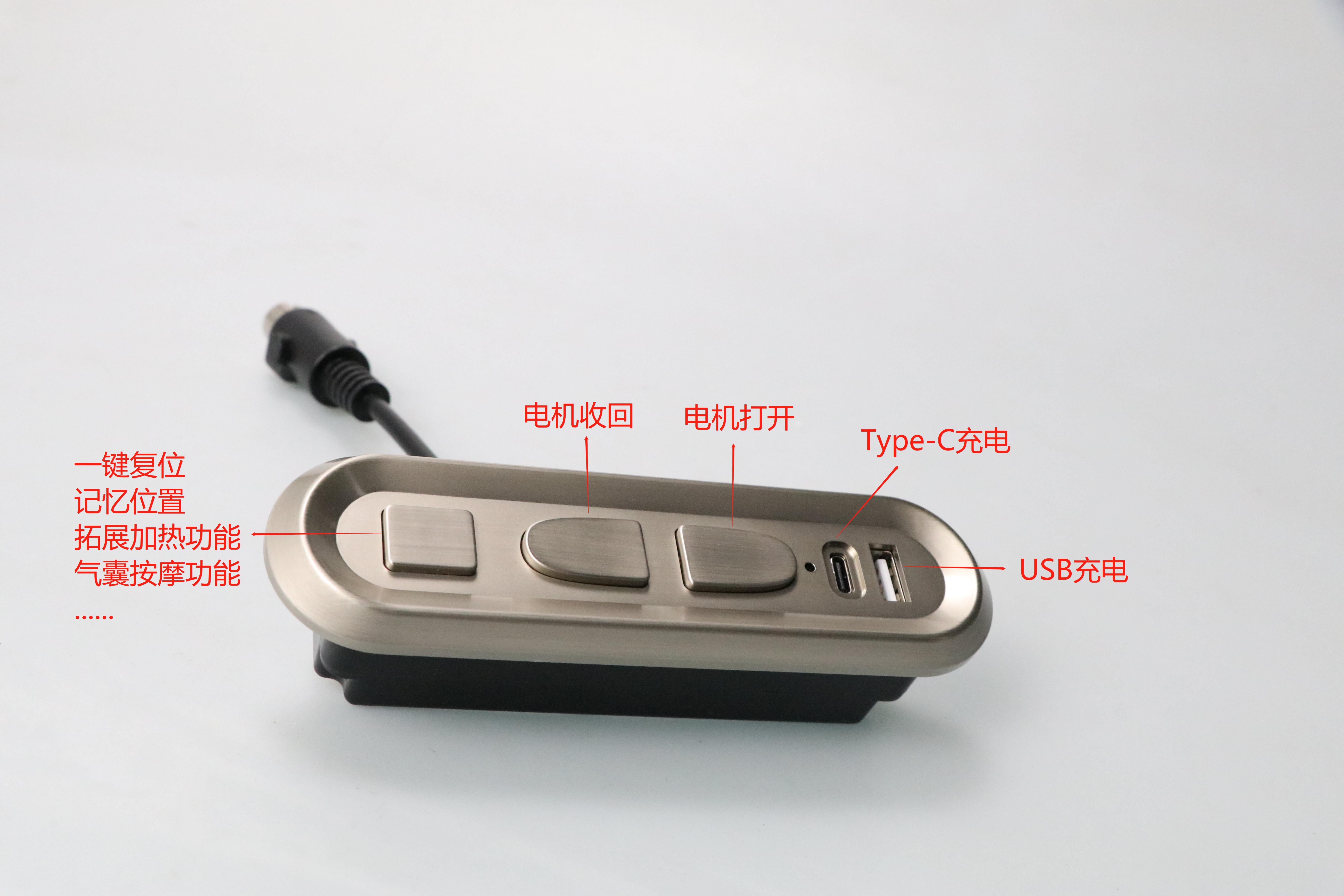 ① 一键复位:长按2秒,电机开始收回,收回过程中按任意按键,电机都会暂停;