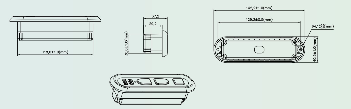 1.开长方形孔,安装开孔尺寸参考安装图;
