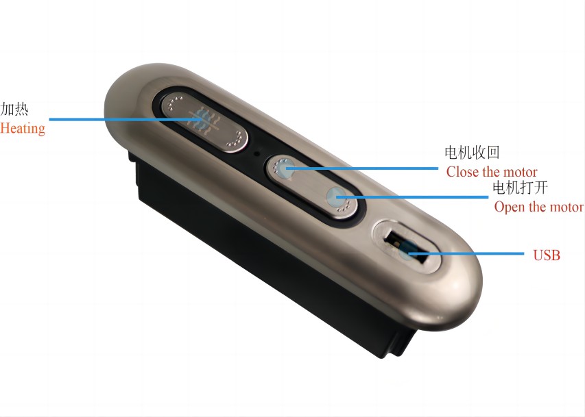 1.打开坐垫:长按打开按键,电机打开动作,松开按键后电机停止动作。