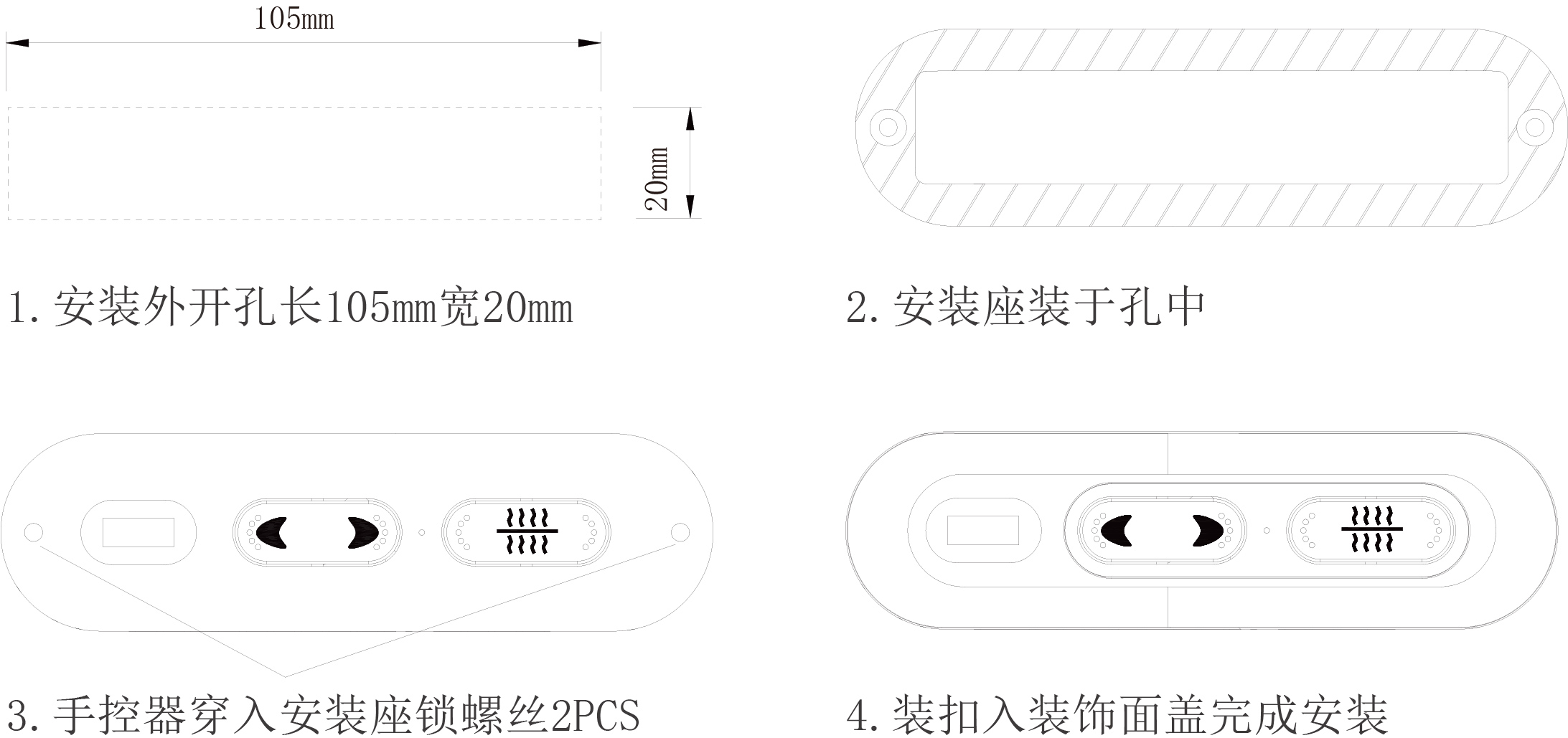 1.开孔长105mm宽20mm