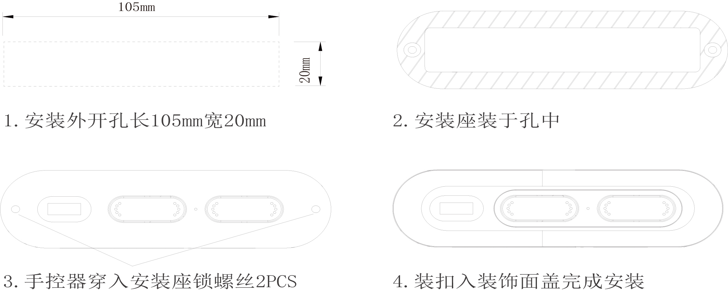 1.开孔长105mm宽20mm
