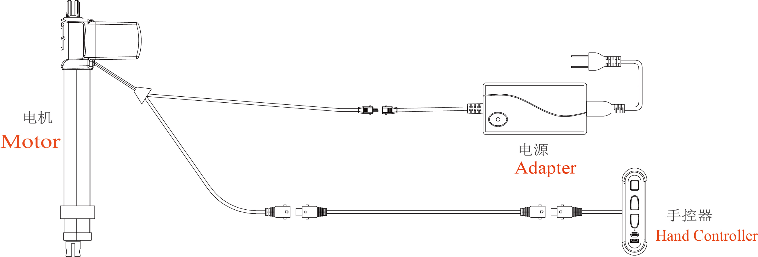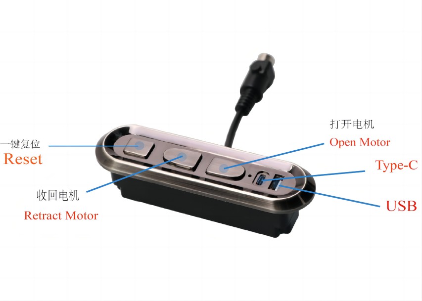 2.脚部收回:长按脚部收回按键,脚部电机收回到行程最小,松开停止。
