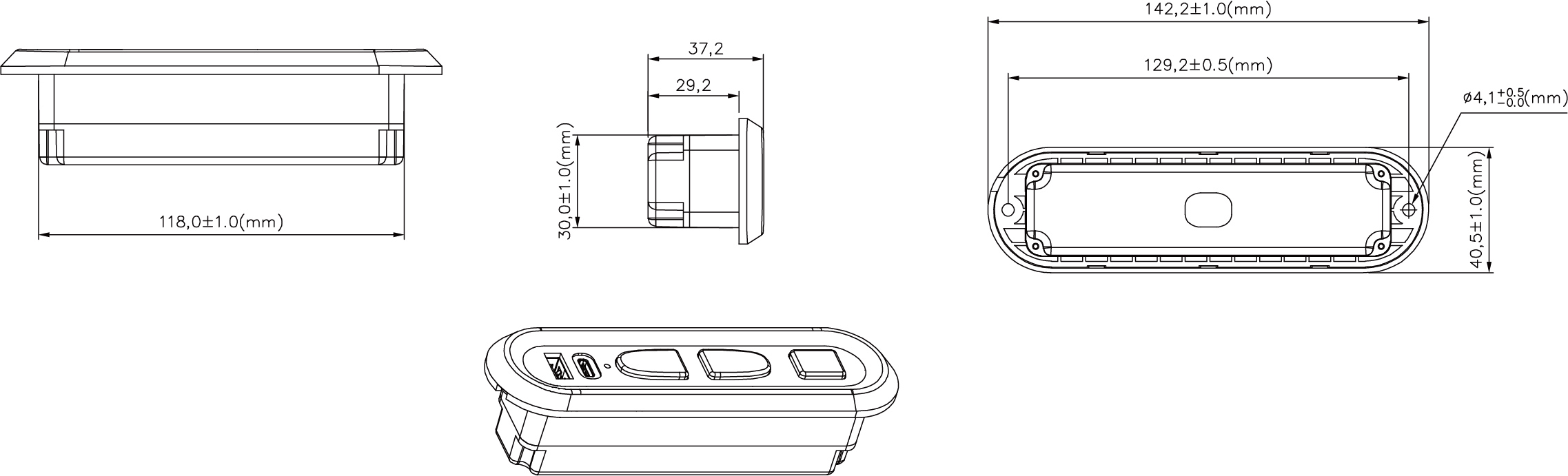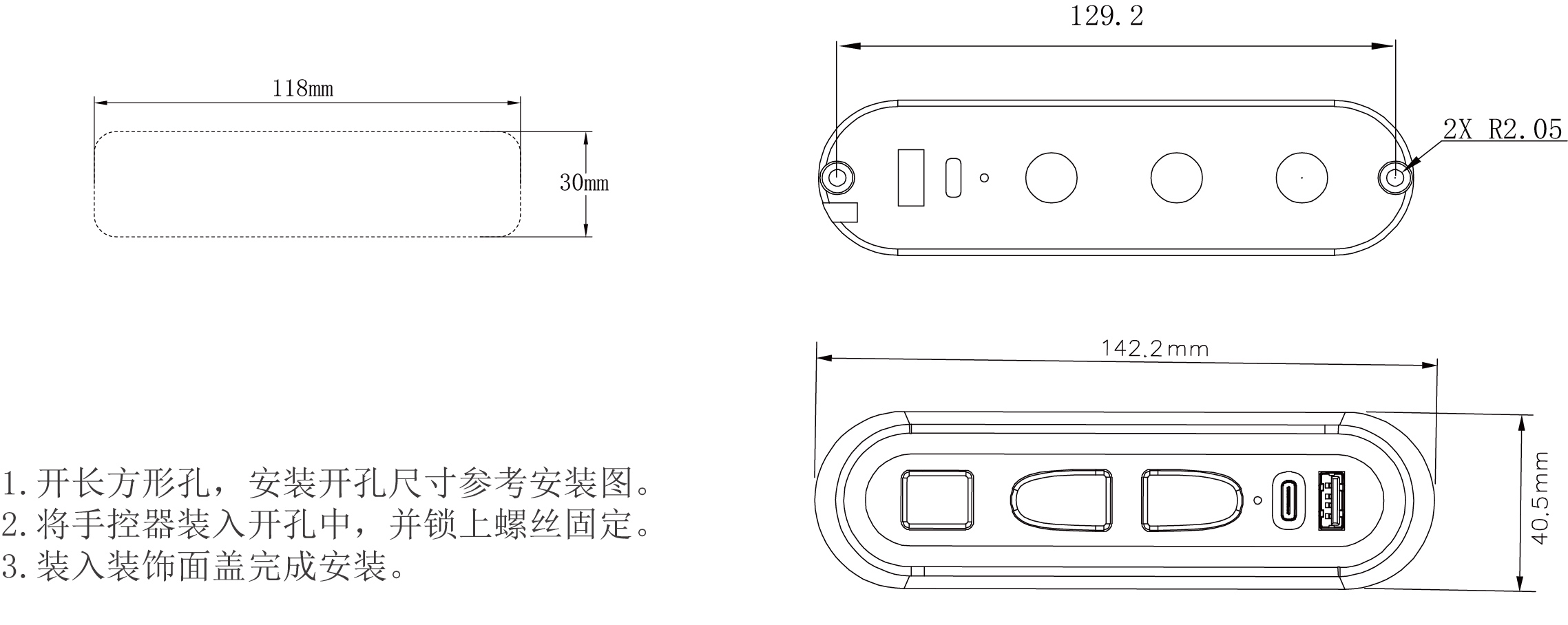 1.开长方形孔,安装开孔尺寸参考安装图。