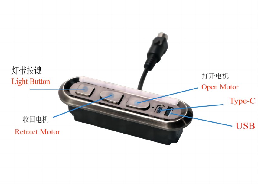 3.灯带按键:点按打开灯带,灯带常亮,再次点按关闭灯带。