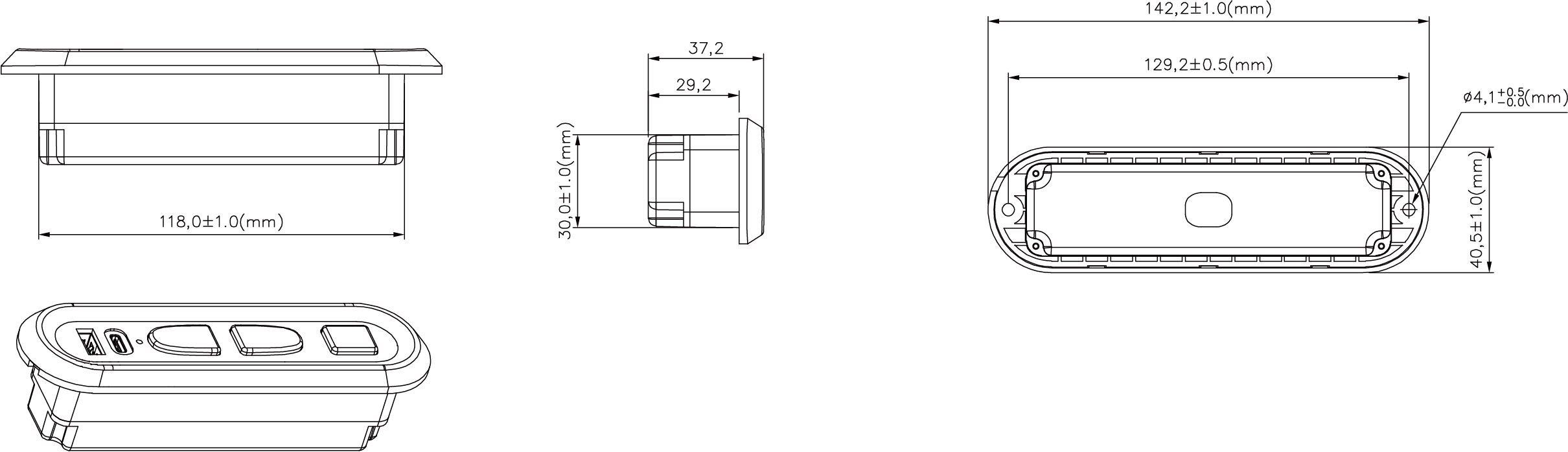 1.开长方形孔,安装开孔尺寸参考安装图。