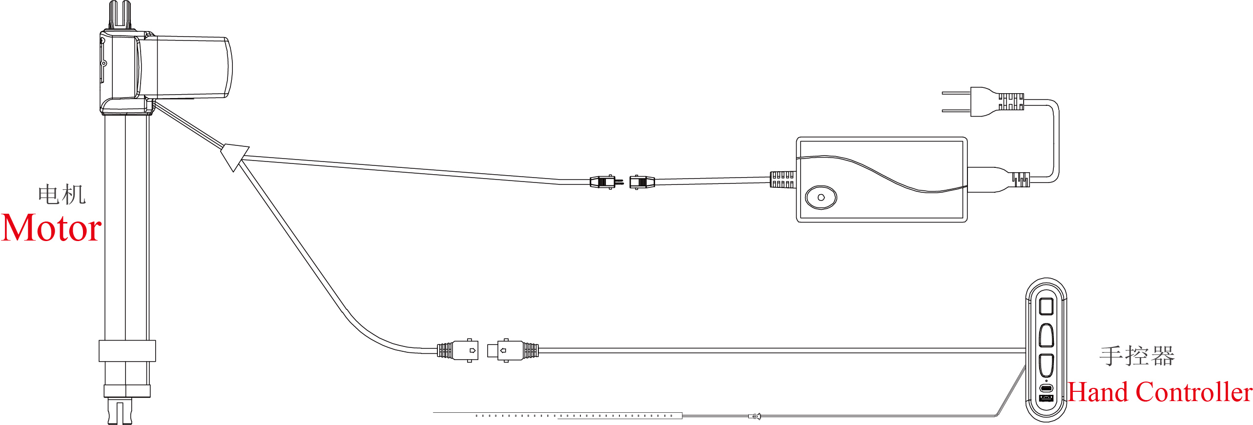 2.脚部收回:长按脚部收回按键,脚部电机收回到行程最小,松开停止。