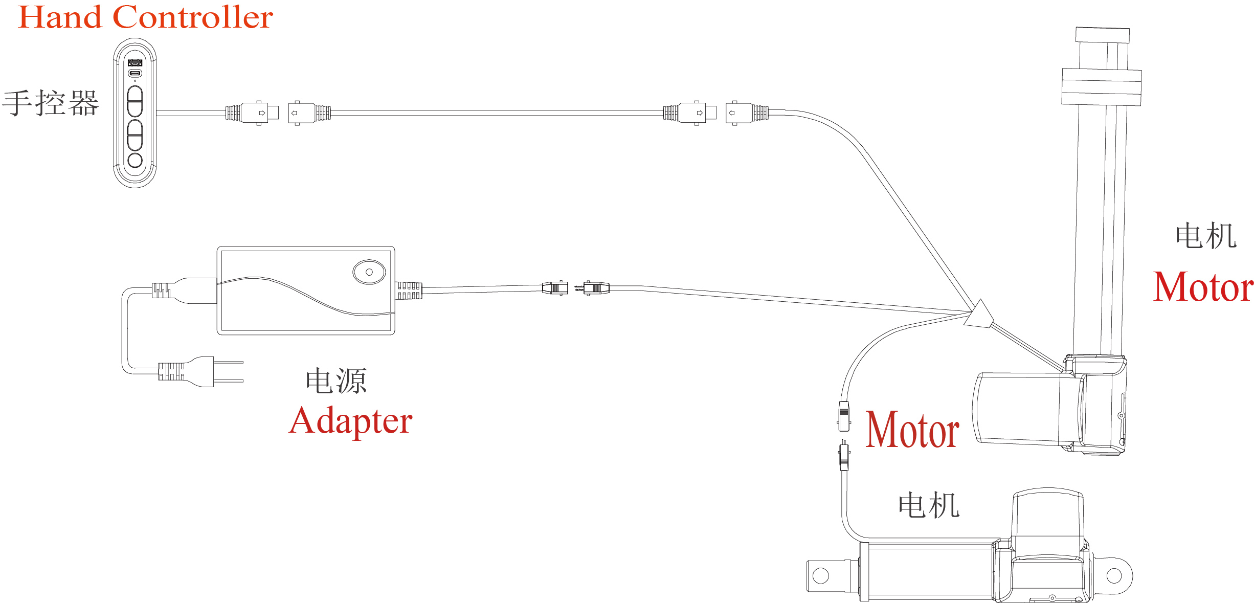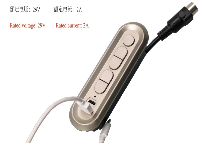 4.背部收回:长按背部收回按键,背部电机收回到行程最小,松开停止。