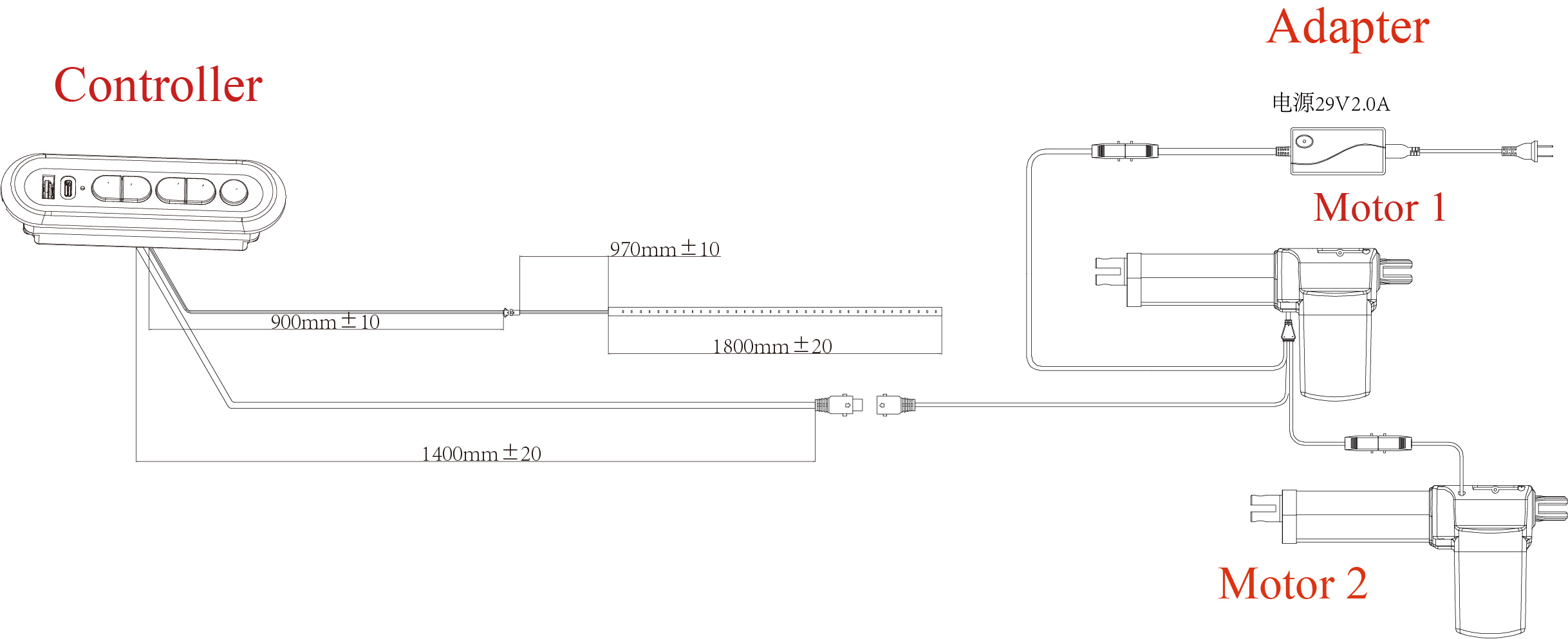 2.脚部收回:长按脚部收回按键,脚部电机收回到行程最小,松开停止。