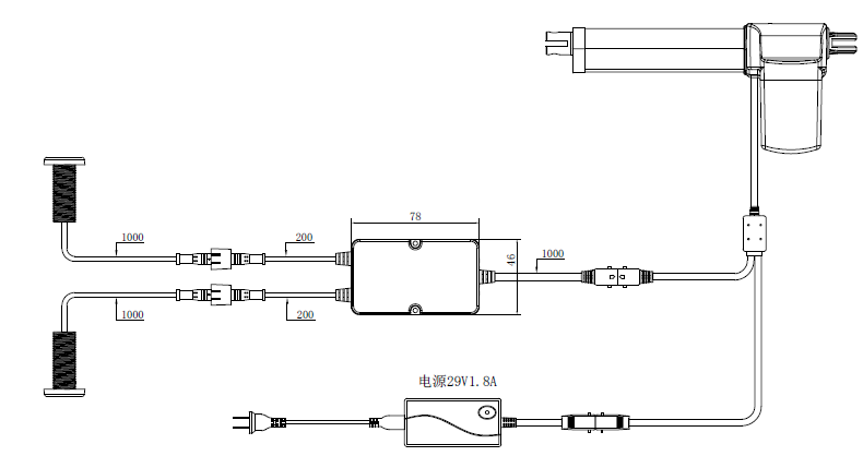 触摸按键1和2分别控制 推杆椅架打开/收回(根据椅架的要求)